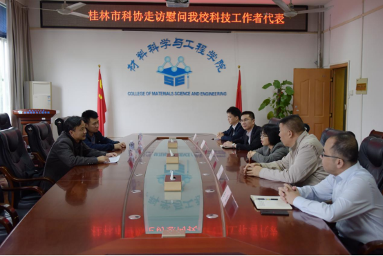 覃爱苗教授主要从事光电纳米材料的制备、表征及应用研究工作,并获得了一些可喜成果,陈雪潮详细询问覃爱苗及我校科技工作者们在科研工作及生活上有什么问题,希望覃爱苗所在材料学院发挥高校及学科优势,携手科协为广西科技创新多作贡献,并表示将持续优化科技工作环境,用心做好服务工作,助力科研工作者潜心科研。