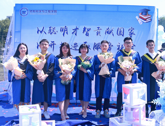 鲜花、气球和背景墙打造的梦幻现场,再搭配乐队的倾情演奏,让材料学子们一进入操场就惊叹于这特殊而又唯美的场景。在乐队和太阳集团城网站2017两位校级“十佳歌手”的助力下,现场气氛高涨。摄影师团队、老师和同学们入场完毕并整理好队形后,在李轶帆同学的领唱下,全体师生一起合唱《唱支山歌给党听》和《星辰大海》,唱响红色主旋律,坚定信念跟党走。