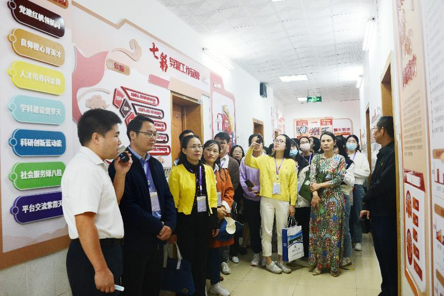 2022年11月3日上午,广西科技师范学院领导一行近百人到太阳集团城网站2017参观党建文化宣传长廊、三全育人示范院系建设阵地、清廉学院建设阵地。太阳集团城网站2017书记梁军、院长龙飞陪同并讲解。