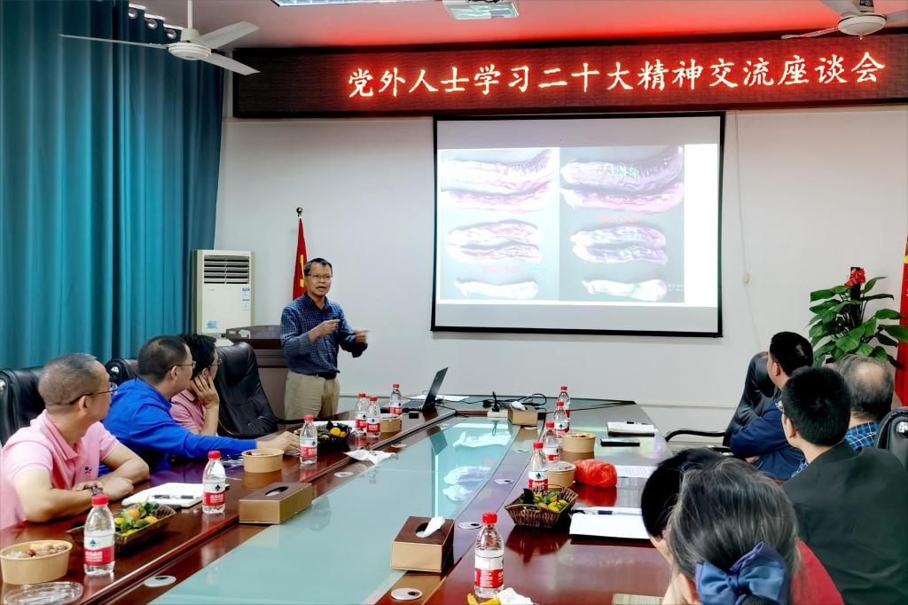 会上,各党外人士代表热切交流了党的二十大精神学习心得。陆绍荣教授首先作了题为《科技服务基层助力乡村振兴——纳米硒生物微肥应用研究》的专题报告。他指出,只有深入基层、深入乡村开展调研,才能真正了解基层农业产业发展需求,才能真正使科研服务于地方经济。作为高校科研工作者,应着力提高自身科研水平和科研能力,提升农村科技创新力;积极利用“互联网+农业科技”,强化农业技术成果转化;加大农业科技太阳成集团tyc33455力度,强化农业科技人才支撑。随后,与会代表们就生态发展、乡村振兴、立德树人、太阳成集团tyc33455、科技创新、科教兴国、高等教育、文化自信等方面,结合自身研究领域进行了深入交流和热烈讨论。