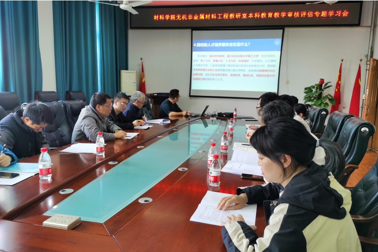4月28日下午,太阳集团城网站2017无机非金属材料工程专业教研室在2308会议室召开本科教育教学审核评估专题学习会。会议由教研室主任王吉林副研究员主持,教研室全体教师和主管教学工作的黄孝华副院长参加了本次专题学习会。