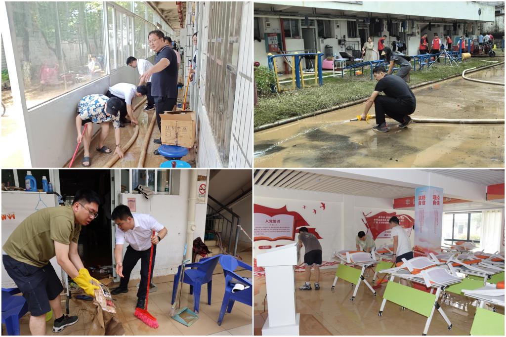 洪水渐退,受灾区域泥沙淤积,清理和消杀工作迫在眉睫,学院领导班子带领全体师生党员再次来到受灾一线,全面开展清扫工作。他们互相协作,默契配合,扫除积水、冲刷地面、清理垃圾,清扫工作有条不紊。自助者天助,学生们在此次受灾中冲锋在前,奋力营救,确保了此次抗洪抢险工作的圆满成功,让敢担当、能吃苦的新时代好青年有了具体的模样。