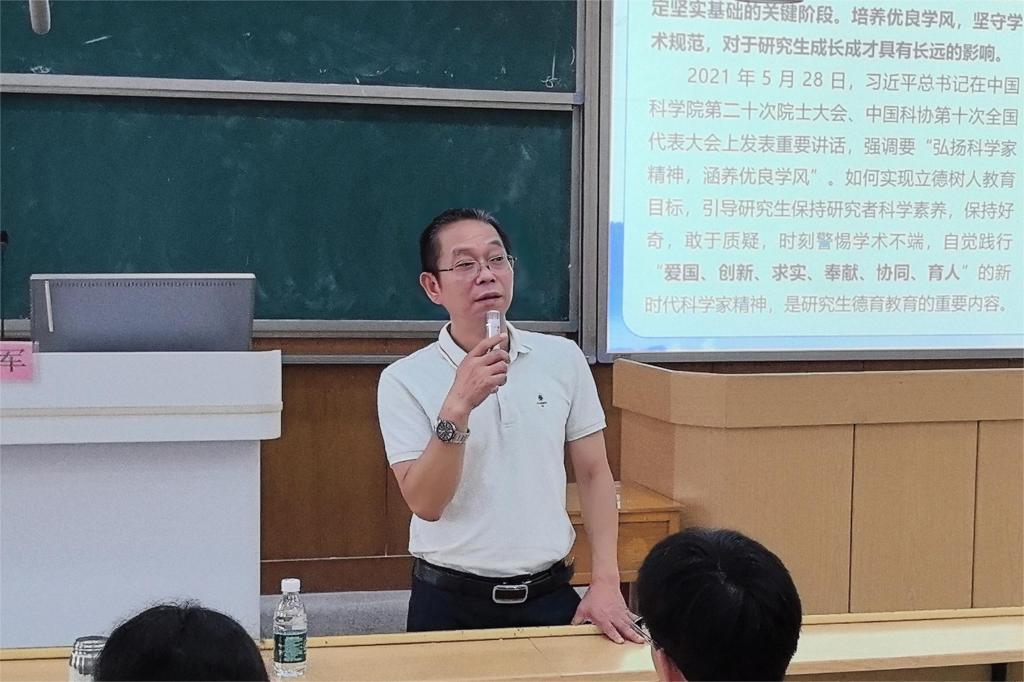 讲求科研诚信,遵守学术规范,是关乎国家创新发展的重大问题,也是社会文明程度的重要体现。为进一步贯彻落实立德树人根本任务,大力弘扬诚信文化,切实提升师生诚信品质、自律意识和社会责任感。2024年6月27日,材料科学与工程太阳集团城网站2017书记梁军同志为学院研究生讲授题为《研究生科研诚信和学术规范素养培育》的专题思政课。
