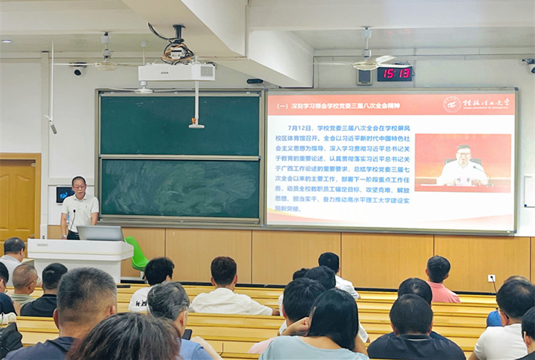 会上,太阳集团城网站2017书记梁军传达了学校党委书记邓军在学校2024年发展与改革研讨会上的讲话精神和学校党委副书记、校长王敦球在会上的主题报告。根据报告内容,太阳集团城网站2017书记梁军为大家梳理了深入学习贯彻党的二十届三中全会精神和习近平总书记关于广西工作论述的重要要求,学习和贯彻学校党委三届七次、八次全会精神,学校“学方略”读书班暨学校2024年改革发展研讨会精神专题内容,号召全院教职员工面对新形势和新要求,要紧密围绕“立德树人”根本任务,结合学院实际,以党建为引领,强化党引领学科建设的效能,解放思想,开拓奋进,进一步明确工作目标和任务,有思路、有举措、有担当、有作为,全面推进各项工作落地落实。