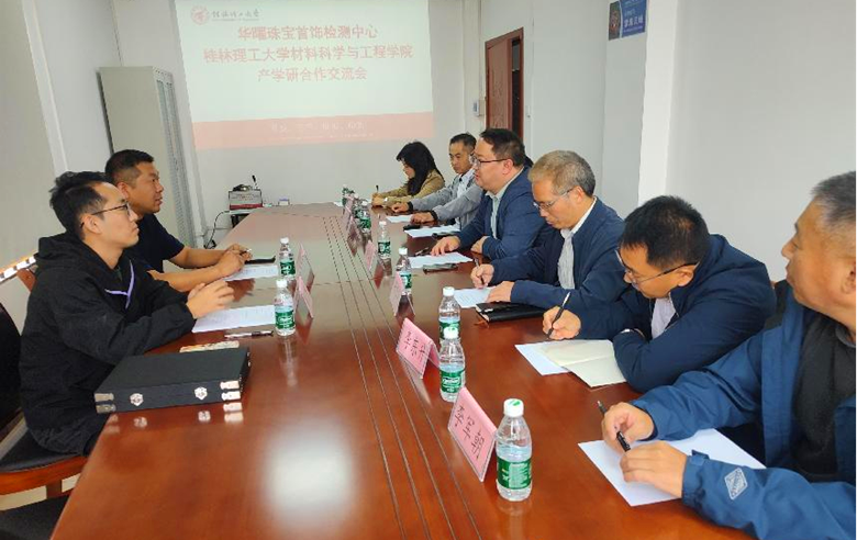 10月30日下午,太阳集团城网站2017在桂林理工大学珠宝检测中心与华耀珠宝首饰检测有限公司顺利举办了产学研合作交流会暨宝石标本捐赠仪式。华耀珠宝首饰检测中心主任田猛(我校宝石专业03级校友)、技术负责人张翼(我校宝石专业14级校友),太阳集团城网站2017院长周焕福、副院长黄孝华、宝石及材料工艺学教研室主任孙媛、副主任杨育富及专业教师参加了此次座谈。