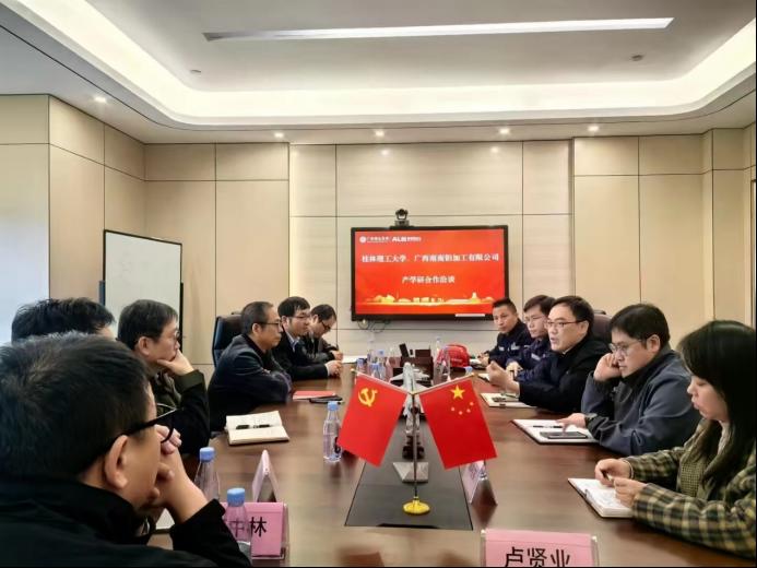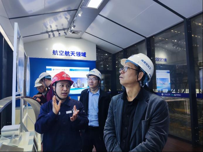 2月14日下午,参访了广西南南铝加工有限公司的航空航天、船舶大规格铝厚板轧制、型材挤压生产线,听取了船舶材料研究所副所长赵启忠关于军用、航空产品开发及工艺技术创新情况的介绍。此外,与公司研究院院长朱立涛、副院长何克准座谈交流,双方就重大项目联合申报、新材料开发、科技奖项申报等方面交换了意见,并在学生实习方面达成了一致。