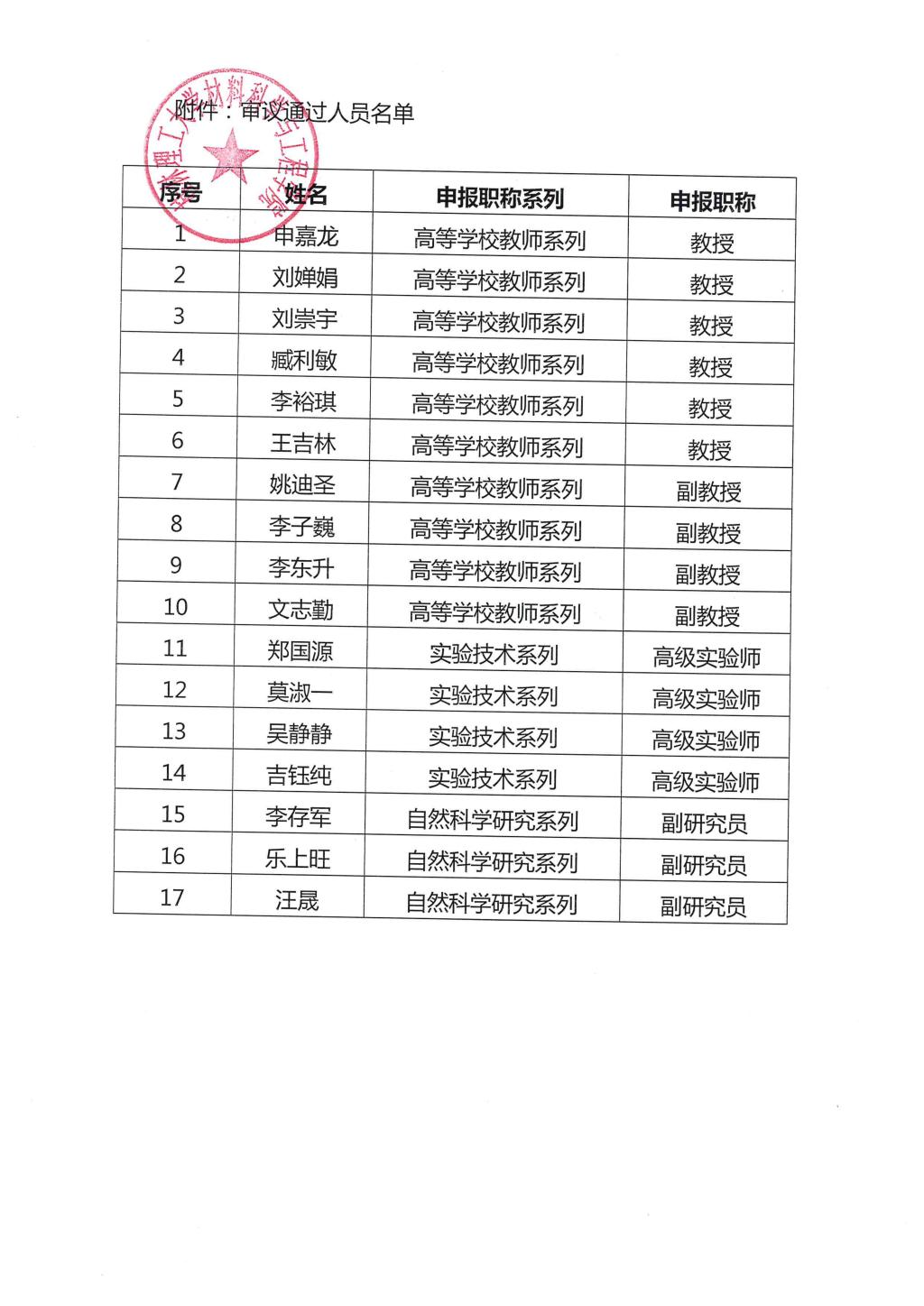 太阳集团城网站20172024年度职称审议推荐结果公示