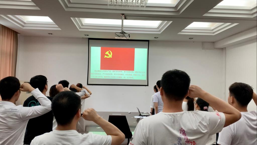 直播结束后,支部组织新党员入党宣誓、老党员重温入党誓词活动。支部书记李俊俊同志,希望参会人员用习近平新时代中国特色社会主义思想武装头脑,坚定马克思主义的信仰、中国特色社会主义的信念、中华民族伟大复兴的信心,不负党和人民的殷切期望。
