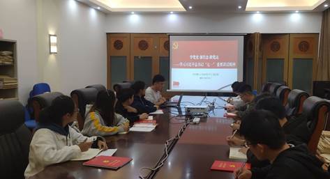 为了深入贯彻学习习近平总书记“七一”重要讲话精神,10月15日晚上,本科生第三党支部在2304会议室召开了“学党史,强信念,跟党走学习习近平总书记“七一”重要讲话精神”专题学习会,会议由支部书记徐时同志主持,支部全体党员参加。