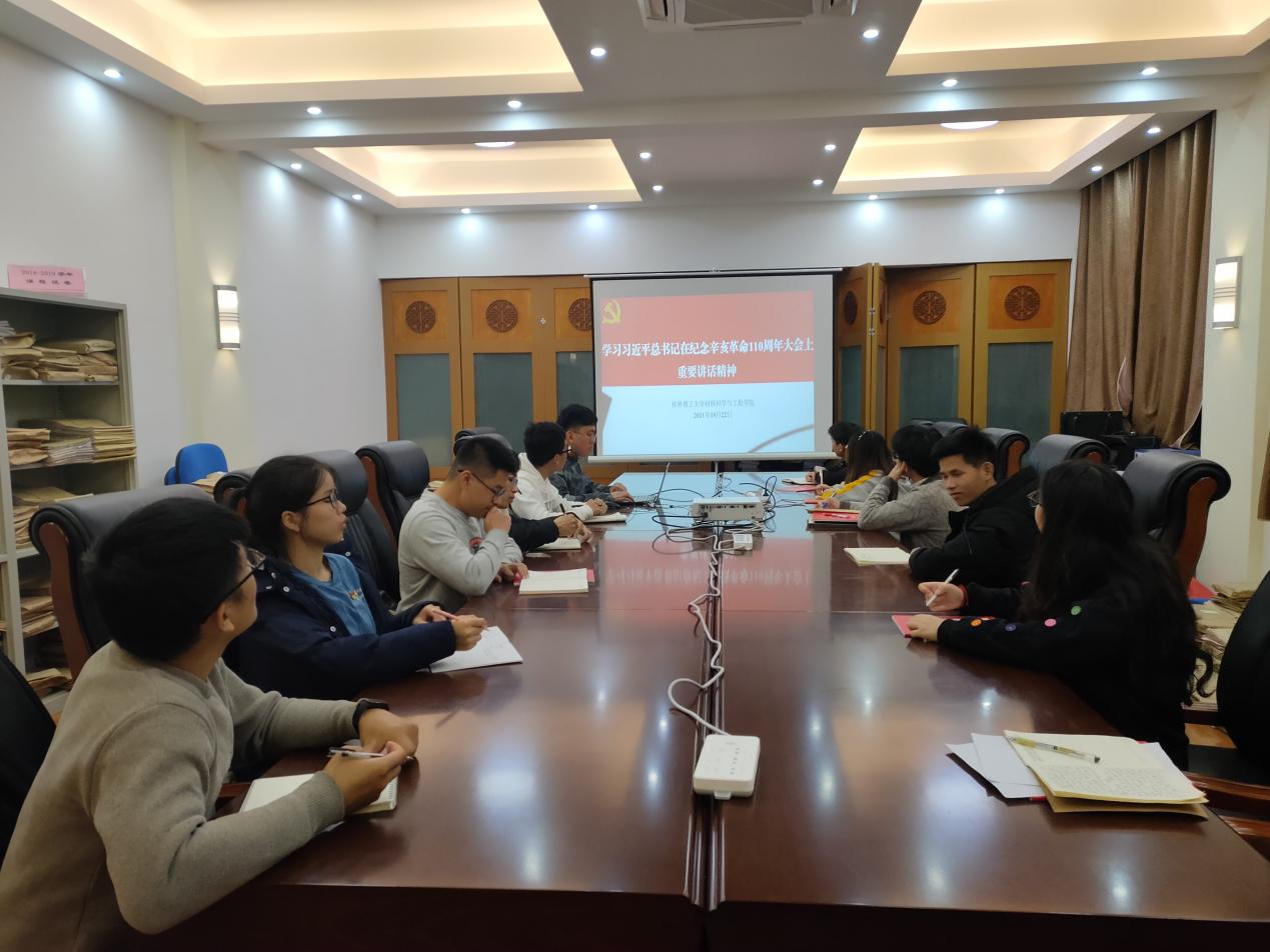 太阳集团城网站2017本科生第三党支部开展学习习近平总书记在纪念辛亥革命110周年大会上重要讲话精神专题会议2021年10月22日晚,太阳集团城网站2017本科生第三党支部在屏风校区2304开展了学习习近平总书记在纪念辛亥革命110周年大会上重要讲话精神的专题会议。会议由支部书记徐时同志主持,支部全体党员参加。