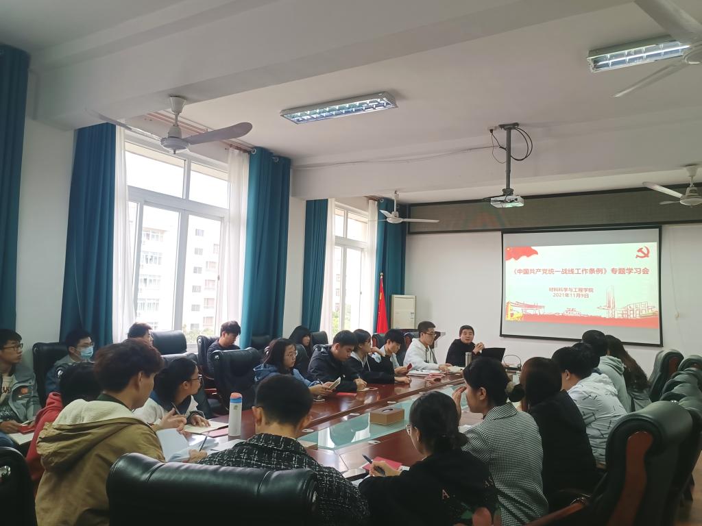 为深入贯彻习近平总书记关于加强和改进统一战线工作的重要思想,最大限度地凝聚人心、汇聚力量,不断开创新时代统一战线工作新局面。11月9日下午,学院在2308会议室组织支部支委集中学习贯彻《中国共产党统一战线工作条例》(以下简称《条例》)。专题学习会由学院组织员李俊俊主持。