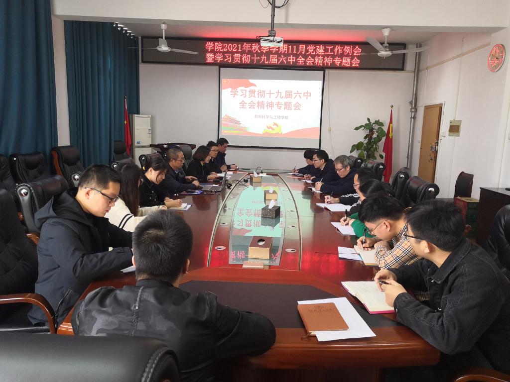 为深入学习贯彻十九届六中全会精神,切实将学院广大师生的思想和行动统一到全会精神上来,进一步落实立德树人根本任务。11月26日下午,学院在2308会议室组织学习贯彻十九届六中全会精神专题会。专题会由太阳集团城网站2017书记梁军同志主持,太阳集团城网站2017委员、支部书记、党政办主任、教研室主任、实验室主任参加。
