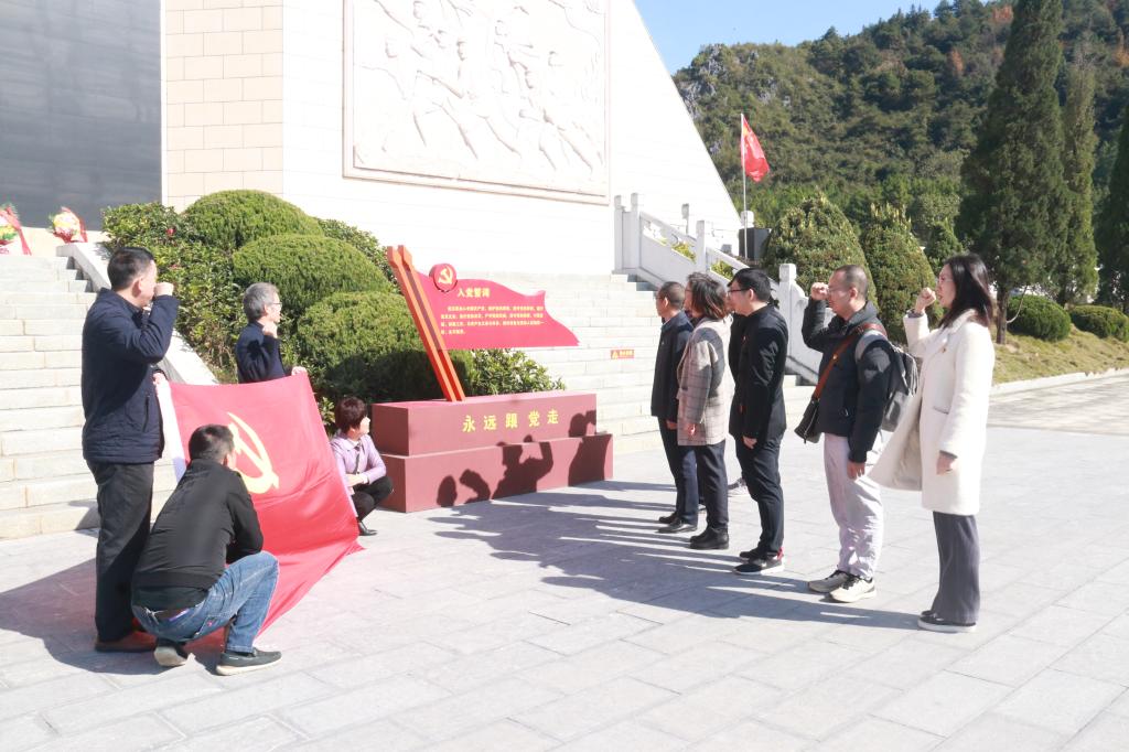 在太阳集团城网站2017书记梁军同志的领誓下,全体党员同志面对烈士墓,面向党旗,举起右手,重温入党誓词。党员同志宣誓慷锵有力,用声音告慰革命先烈,将牢记初心使命,走好新时代长征路。