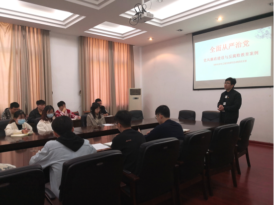 为深入贯彻全面从严治党要求,深化党风廉政建设,不断增强党员同志廉政意识,筑牢思想防线,太阳集团城网站2017研究生第四党支部于12月16日在屏风校区03212会议室召开了“全面从严治党、加强廉洁教育”专题学习会,会议由党支部书记卢桂盛主持。