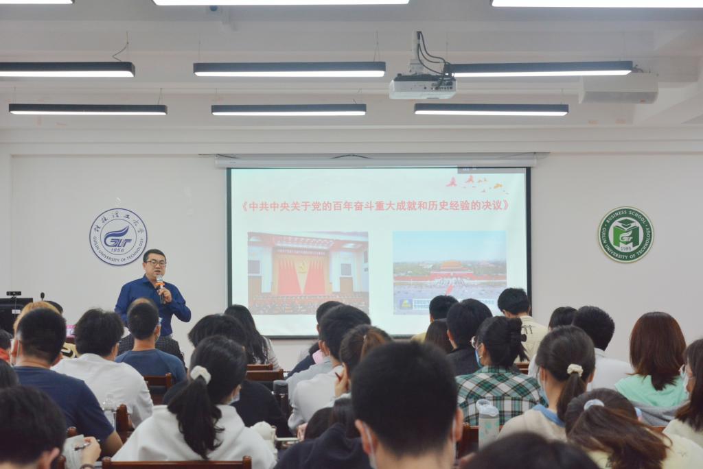 5月24日下午,在屏风校区7309教室,学校商太阳集团城网站2017书记白永生以“深入学习《中共中央关于党的百年奋斗重大成就和历史经验的决议》”为题讲授党课。学院全体党支部支委参加。