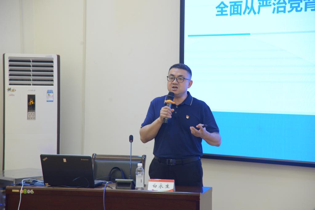 会上,白永生同志结合党的二十大报告中关于坚定不移全面从严治党、深入推进新时代党的建设新的伟大工程进行了讲解,并围绕“全面从严治党对高校党支部建设提出的新要求”、“党的十八大以来高校党支部建设的实践创新”、“全面从严治党背景下加强高校党支部建设的工作展望” 等三方面进行了分析,他强调要把党支部建设放在高校立德树人根本任务中来布局,放在党对高校全面领导的战略格局中来谋划,提升到深化高等教育改革基础性保障性工程的高度上来加强,聚焦到补齐补强高校基层党建短板弱项上来推动,坚守为党育人、为国育才的初心,时刻牢记以党的自我革命引领社会革命,发扬斗争精神全面从严治党,不断增强支部的创造力、凝聚力和战斗力,为学校建设贡献力量。