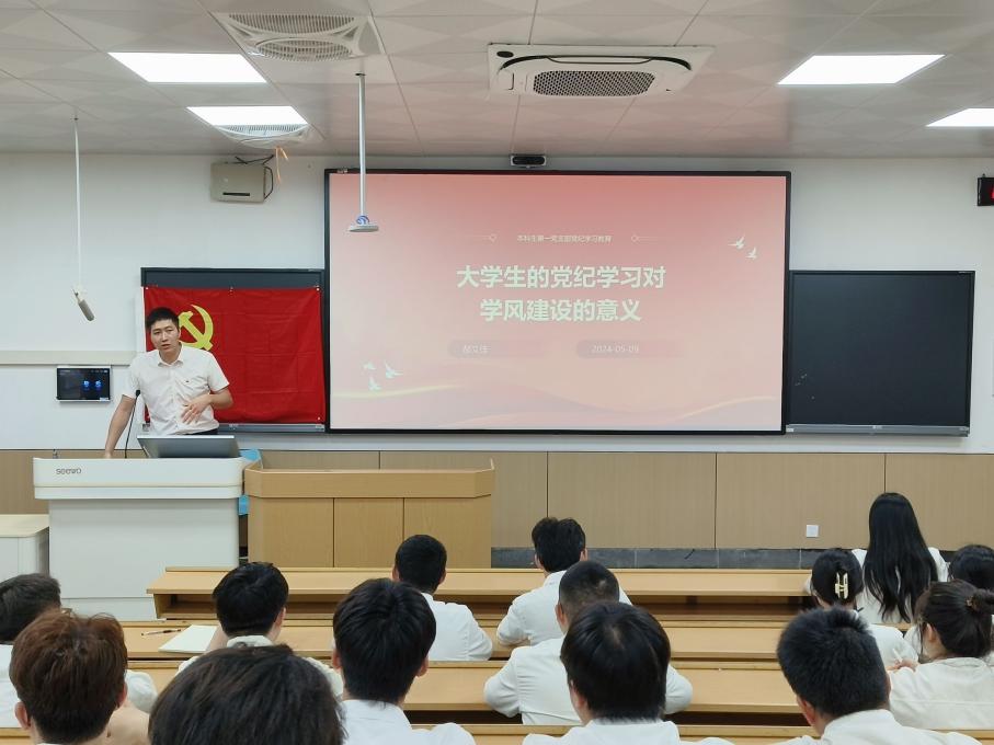 党课上,郝文佳同志从塑造正确的价值观、培养纪律性和自律性、强化责任意识和担当精神、促进优良学风的形成、提高思想道德素质等方面出发,讲述了大学生应该以党纪学习教育为基础推动优良学风建设,应该在同党中央保持高度一致的同时遵守学术规范、遵守学校的各项纪律规定。