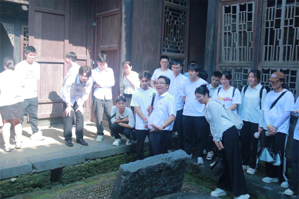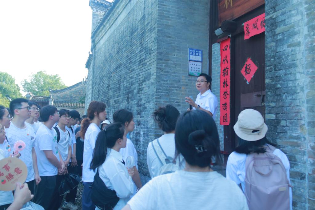 在桂林市党史专家陆平教授的带领下,师生党员有序参观了爱莲家祠、举人路、进士街、秀才巷等标志性历史文化建筑遗迹。通过近距离“听、看、问”相结合的方式,让师生党员深入了解周氏家族世代清官渊源,深切感受江头村廉政廉洁文化、家风家教文化的底蕴和内涵,不断从中吸取新的政治营养,丰富自己、充实自己,进而推进“清廉学院”建设全面提质增效;增强师生党员坚定拥护“两个确立”、坚决做到“两个维护”的思想自觉、政治自觉和行动自觉。