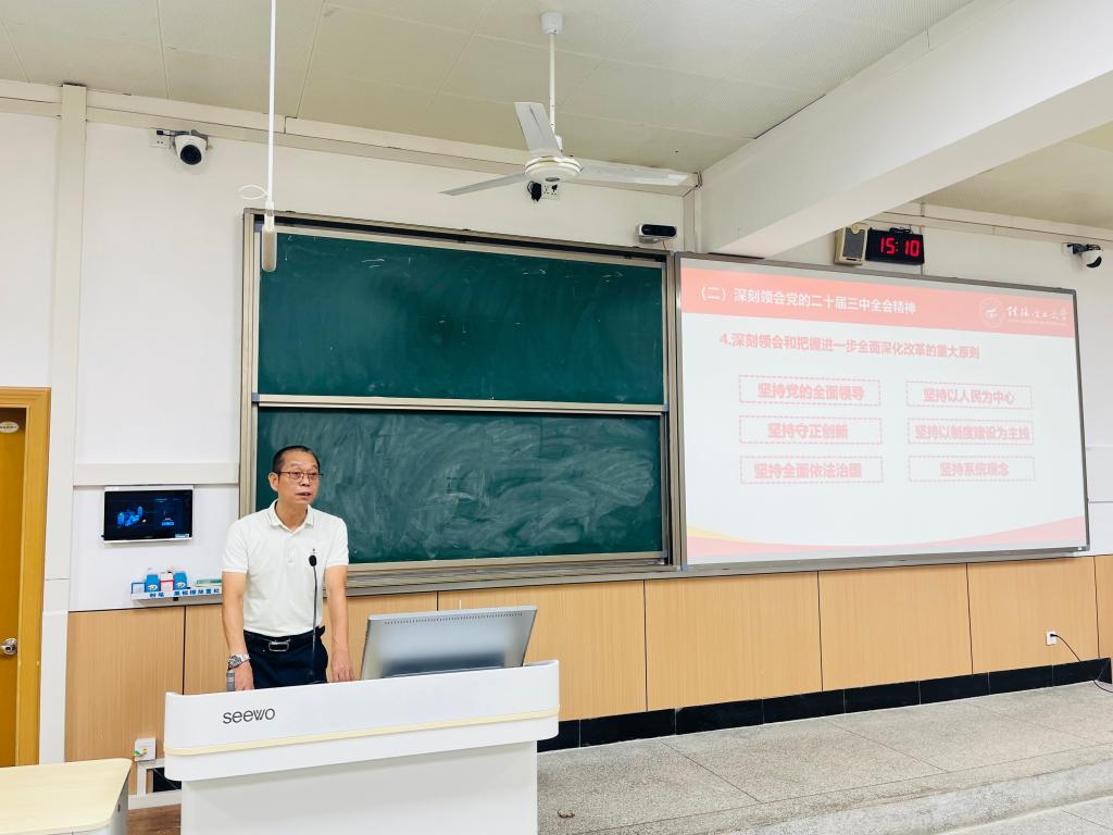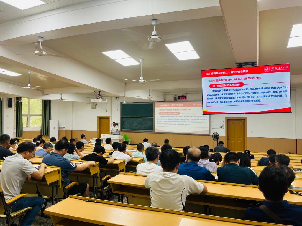为深入学习贯彻习近平新时代中国特色社会主义思想,认真落实党的二十大和二十届一中、二中、三中全会精神。9月6日下午,太阳集团城网站2017书记梁军在9201教室为学院教职工讲授题为《深刻领会学习党的二十届三中全会精神》专题党课,学院全体教职工参加学习。