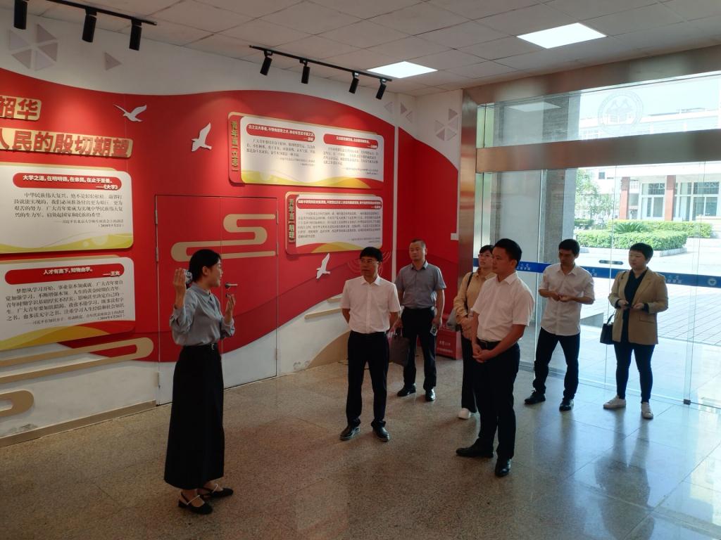 在学院学生第一党支部副书记唐丹婷的讲解带领下,李图仁一行参观了学院党建育人阵地,仔细听取了六大模块的内容介绍。长期以来,学院党建育人阵地将学院特色文化、师生先进事迹、党建红色元素、教育教学情况、科学研究进展、服务地方现状等元素相结合,以贴近师生的方式沁润心灵,打造了具有材料特色的党建育人品牌。每到一处,唐丹婷都详细深入地讲解了学院的举措、成效。李图仁一行在参观中不时停下脚步,就学院党建育人阵地建设经验等内容与陪同人员进行交流,并对太阳集团城网站2017的党建育人阵地举措和成效给予了高度认可。