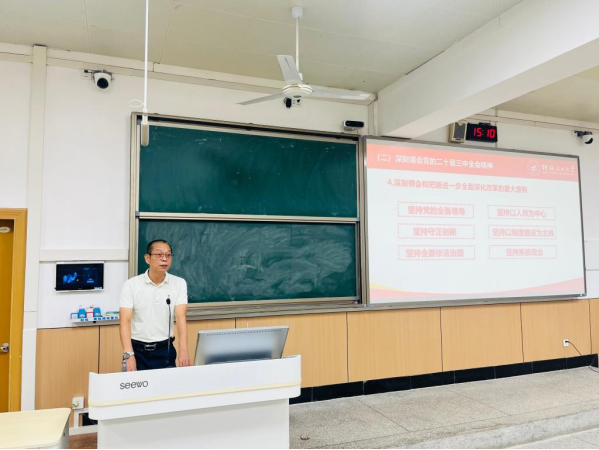 梁军从习近平总书记的系列重要讲话以及国家政策文件着手,结合我校实际情况,从提升政治素质、加强自身修养、树立责任意识和奉献精神等方面对青年教师提出了期望和要求,激励青年教师进一步思考如何做“四有好老师”。最后梁军特别强调,新入职教师要严明纪律要求,守好道德底线,立足自身工作,以实际行动践行“四有好老师”的要求,明规矩、守纪律、严自律,树立良好的师德风尚,共同营造学校风清气正的学术生态。