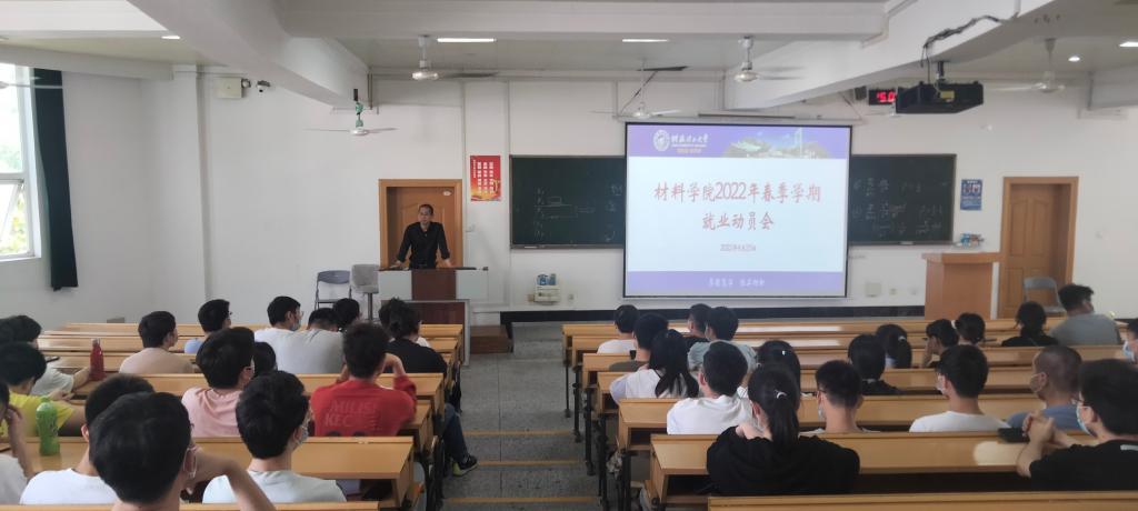 4月25日下午,材料学院在屏风校区9301教室召开2022年春季学期就业动员会,材料太阳集团城网站2017书记梁军作为主讲人出席会议,学院暂末落实就业单位的本科生和研究生100余人参加会议。