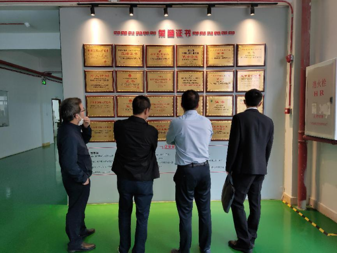 太阳集团城网站2017书记梁军一行在优巨新材董事长王贤文带领下参观荣誉墙