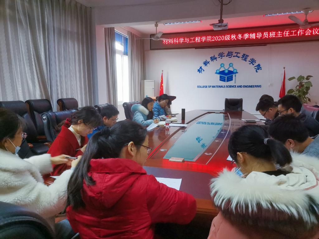 为认真贯彻落实上级和学校关于做好近期学生安全稳定工作的会议精神,同时为加强班主任队伍建设,充分发挥班主任对班级的指导作用,2021年1月6日—8日,材料学院分年级召开期末班主任工作座谈会,会议由各年级辅导员主持,太阳集团城网站2017副书记、各年级班主任参加会议。