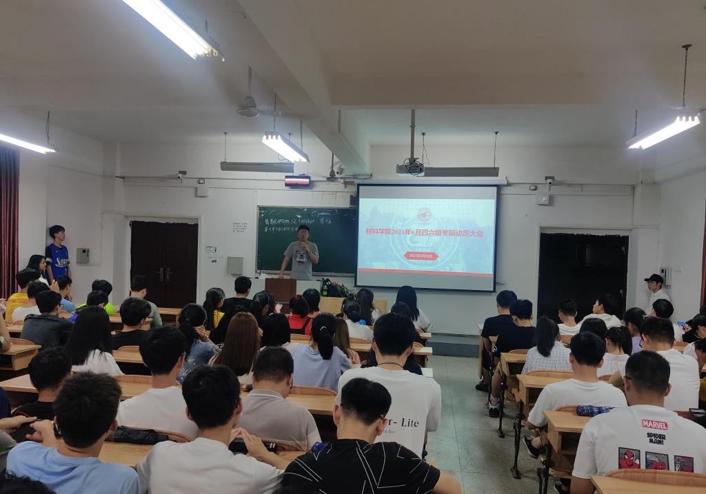 为加强学院学风建设,提升同学们学习英语的热情以及学院学生四六级通过率,材料学院于2021年5月30日晚在雁山校区06301召开了2021年6月英语四六级考前动员大会。会议由2020级辅导员曲怀仁老师主持,2020级全院学生参会。