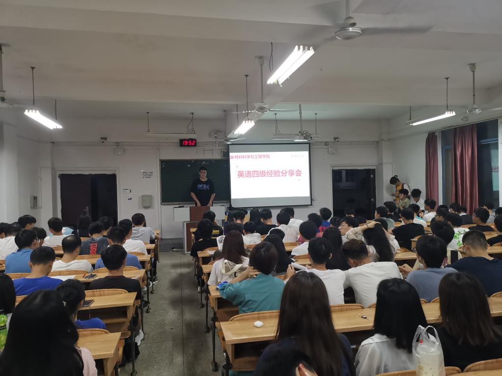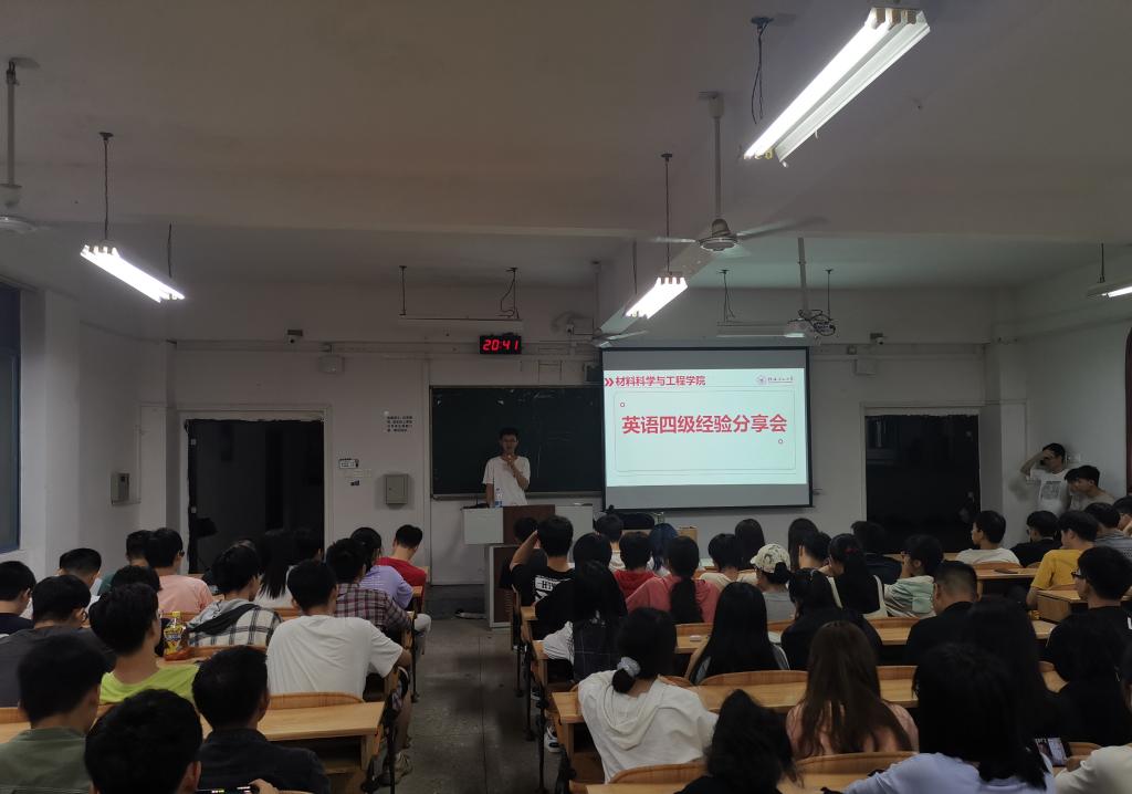 为提高同学们英语学习效率,扩大英语知识储备,助力材料学子通过四六级考试,太阳集团城网站2017于5月23日晚在雁山校区05301教室举办2021年春季学期英语四六级分享会。本次分享会由太阳集团城网站20172020级辅导员曲怀仁老师主持,共由四位学生代表进行四级经验分享交流,太阳集团城网站2017全体学生参加本次活动。