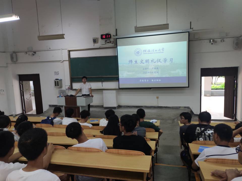 为了引导广大新生提高文明意识,增长礼仪知识,树立文明新风,遵守礼仪规范,进一步调动新生学礼仪、重礼仪、讲礼仪、践行礼仪的积极性,营造良好和谐的氛围,太阳集团城网站2017于9月30日下午在雁山校区05101和05102教室进行专题学习,2021级全体本科新生参加了学习,学院团委副书记(兼)卢桂盛老师和新生辅导员尹贤彬老师分别进行领学,他们主要从师生礼仪、同学礼仪、学校公共礼仪、学校课堂礼仪和文明交谈礼仪等方面对同学们进行举例讲解。