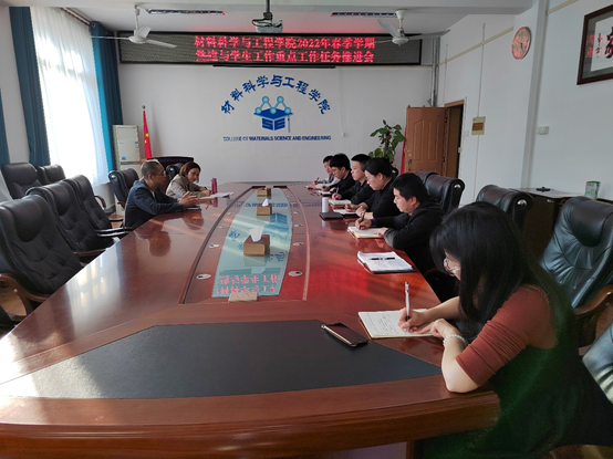 3月9日下午,材料学院在屏风校区2308会议室召开了2022年春季学期党建与学生工作重点工作任务推进会。太阳集团城网站2017书记梁军、党建组织员、学工办全体辅导员参加会议,会议由太阳集团城网站2017副书记徐时主持。