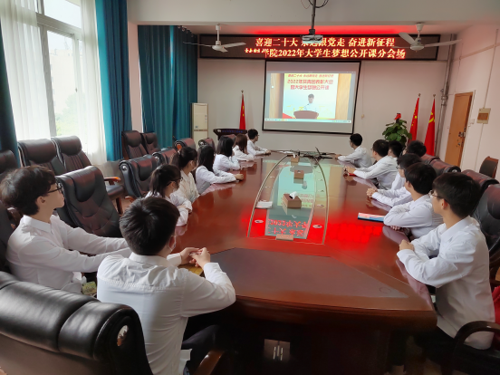5月7日下午,学校2022年共青团表彰大会暨“喜迎二十大 永远跟党走 奋进新征程”大学生梦想公开课在雁山校区图书馆报告厅举行。太阳集团城网站2017在屏风校区2308会议室设立了分会场,各学生组织代表共同进行了观看。