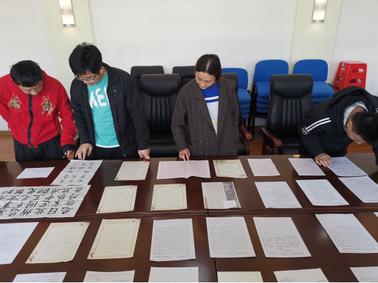5月4日下午,学院党委副书记徐时、辅导员曲怀仁、韦孝鹏、卢桂盛、桂鑫五位老师根据收集的书法作品在屏风校区2304进行现场评审。经过层层筛选,最终评选出书法作品一等奖4名、二等奖8名、三等奖12名,同时选取优秀书法作品依托GUT材料人微信公众号进行推广和线下进行展览。