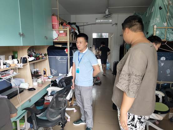 为贯彻落实学校2022年国庆假期安全稳定工作会议精神,切实加强宿舍安全管理,保障学生生命财产安全,确保校园安全稳定。2022年9月29日上午,太阳集团城网站2017全体辅导员及知行社部分成员深入学生宿舍,进行学生宿舍安全隐患大排查。