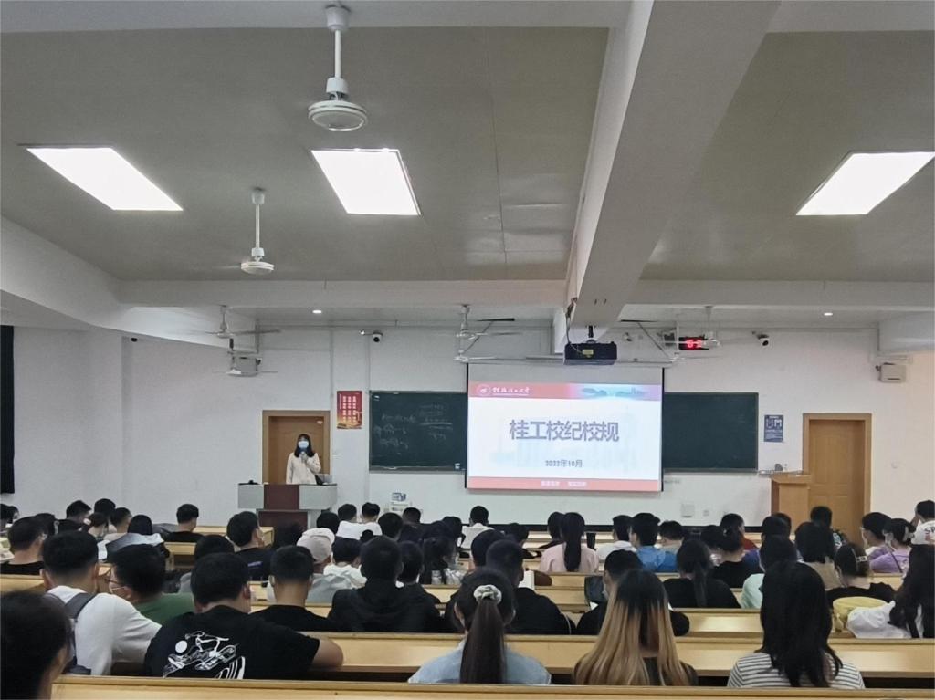 陈信冰老师重点讲述了《桂林理工大学学生违纪处分条例》和《桂林理工大学学生住宿管理规定》中对学生管理的相关要求,着重强调了学校关于晚归、私自外宿、存放大功率电器等情况的处理规定,以及擅自缺课、未经批准离校、考场纪律的相关规定等方面,并提醒同学们违反校纪校规的严重后果。陈信冰老师提到,希望各位同学在校学习、生活能够熟知学校的相关纪律要求,提高认识、高度重视,自觉遵守各项规定,避免在不知情中违反了学校的规章制度。同时提醒学生要自行学习《研究生手册》中关于奖惩、学位管理的其他规定,关注自身的切身利益,更好地完成专业学习。