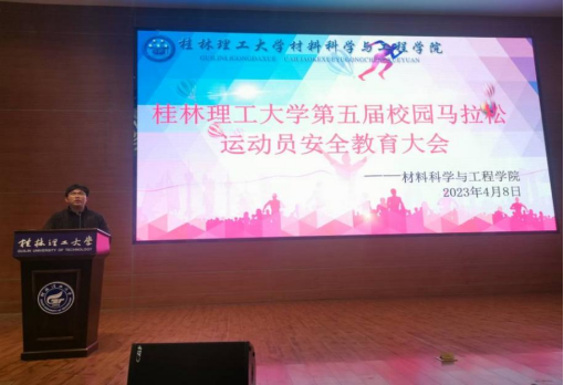 桂林理工大学第五届校园马拉松赛于4月9日在雁山校区进行,为确保本次赛事顺利进行,太阳集团城网站2017于4月8日下午在屏风图书馆报告厅召开马拉松运动员安全教育大会,学院团委副书记卢桂盛、屏风校区运动员参加此次会议。