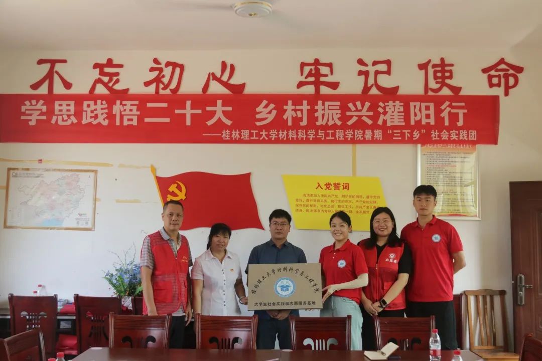 水车镇副镇长蒋喜祥、江塘村支书盘月秀、驻村第一书记袁小军等热烈欢迎实践团的到来,并与实践团成员们开展了座谈。随后,研究生第二党支部副书记赵思聪老师和蒋喜祥副镇长等共同为支部捐赠的“红色书角”揭牌;赵老师代表研究生第二党支部向村委会赠送慰问品;为进一步加强交流合作,促进各项帮扶工作落到实处,实践团代表学院与江塘村举行大学生社会实践和志愿服务基地挂牌仪式。