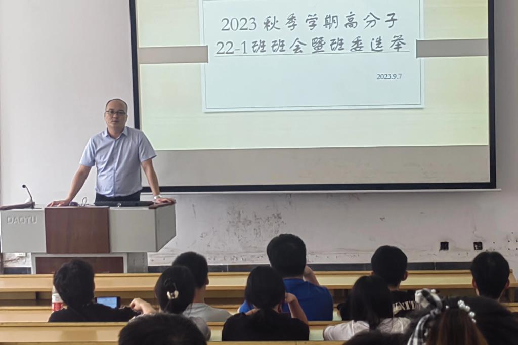 首先,蒋晓俊老师对各位同学相聚在高分子2022-1班表示欢迎,并结合当今国内高分子行业的发展情况以及时代背景,简要分析了高分子行业在我国经济发展以及科技强国战略中的重要性,鼓励同学们团结一致向前看,齐头并进共同建设学风优,班风优班级。