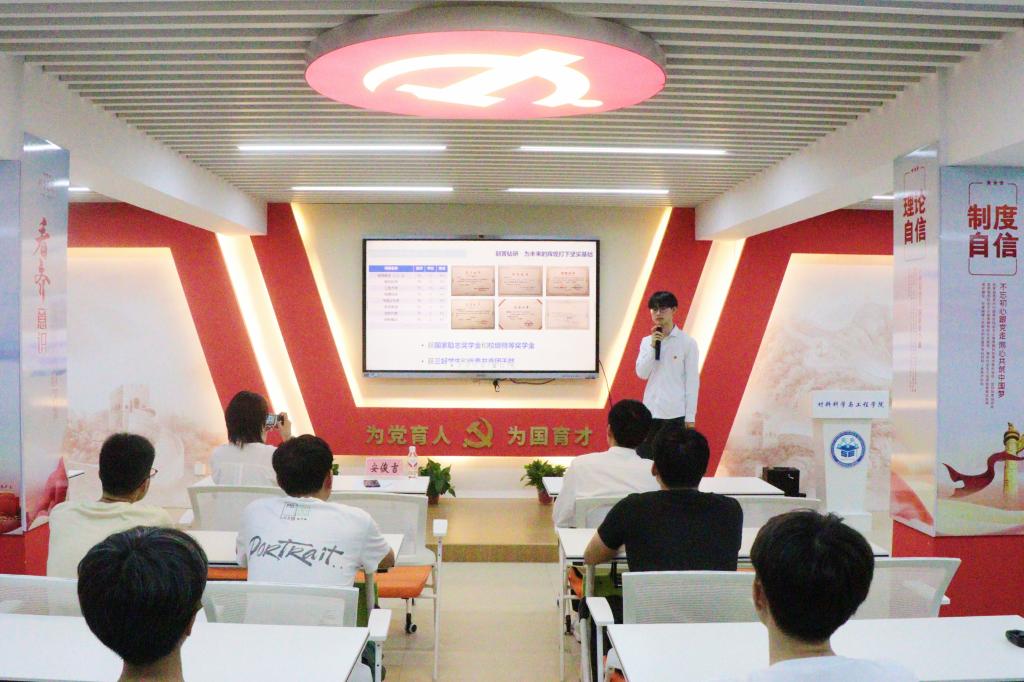 5月16日晚,太阳集团城网站2017于屏风校区材苑“一站式”学生社区思政大讲堂顺利开展成“材”宣讲团“砥砺前行 共筑梦想”主题宣讲会。本次活动旨在通过展示学院优秀学生的成长经历,激发广大青年学子的学习热情和社会责任感,营造积极向上的校园文化氛围,进一步深化资助育人成效。学院辅导员桂鑫老师、分享人沈方萍、安俊吉、谢陶靖三位同学以及全体受助学生参与活动。三位来自不同专业的分享人均是国家资助政策的受益者,会上,他们从学科竞赛、文体活动和社会实践三个维度分享了自己的奋斗故事和宝贵经验。