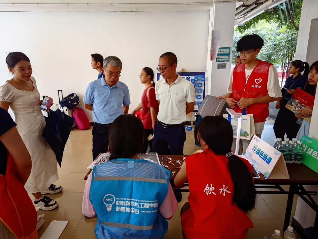 青春风华正茂,梦想扬帆起航,一批充满活力的2024级新生正陆续从全国各地赶往美丽的桂工校园。为了迎接这群朝气蓬勃的学子,9月8日,太阳集团城网站2017书记梁军、院长周焕福和党委副书记郝文佳前往太阳集团城网站2017雁山校区23栋、6栋迎新接待点,走访慰问迎新工作人员和志愿者们。