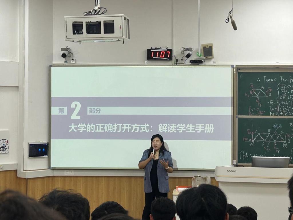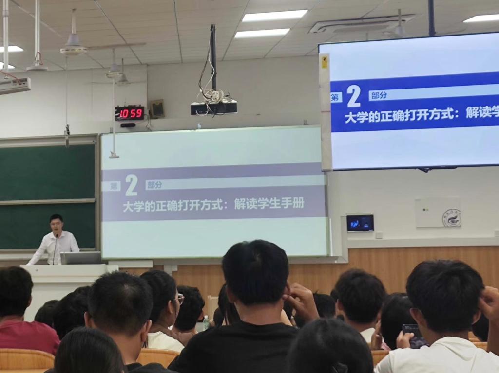 会议上,两名老师首先结合自身在校的经历,向新生们强调了努力学习的重要性,希望大家在大学期间始终保持初心,牢记入学的初衷。接着,赵思聪根据学生手册的内容,逐一梳理了相关规定,强调新生要遵守行为规范,尊重师长,培养良好的思想品德和行为习惯。