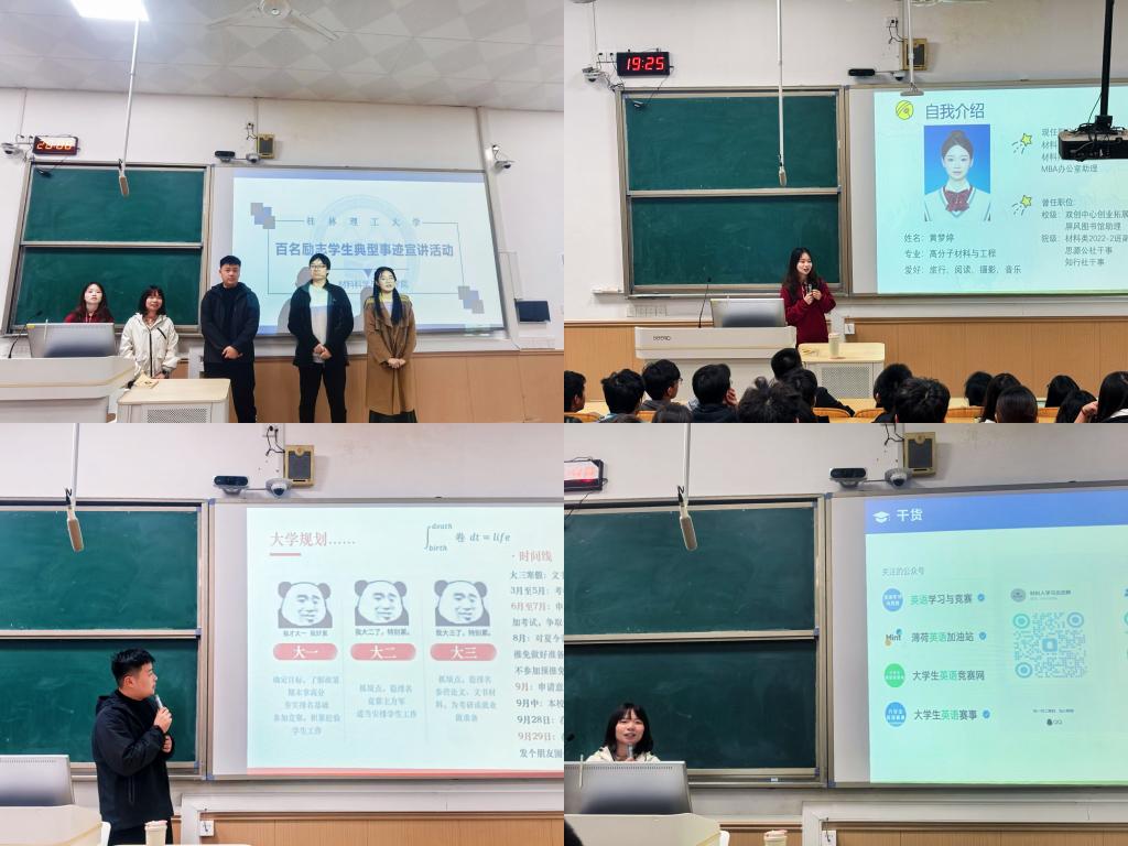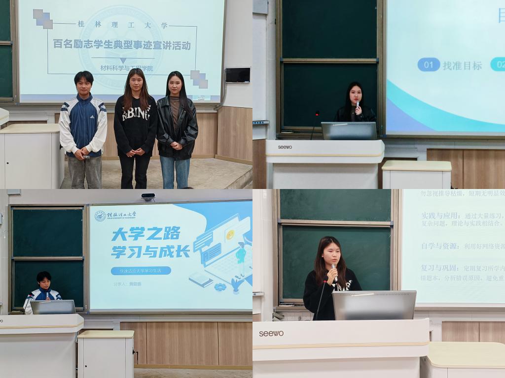11月24日,太阳集团城网站2017于雁山校区07319、04111教室举行了“成‘材’宣讲团”百名励志学生典型事迹宣讲会。本次活动以分享励志学生群体的成长历程为核心,旨在激发广大学子积极向上的精神风貌,彰显资助育人工作的显著成效。宣讲会由学生资助工作专职辅导员董子胜主持,国家励志奖学金获得者周利燊等六位同学、广西壮族自治区人民政府奖学金获得者苟海玲等三位同学进行了精彩宣讲,全体2024级本科生积极参与了此次活动。