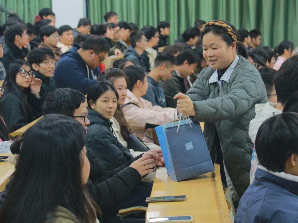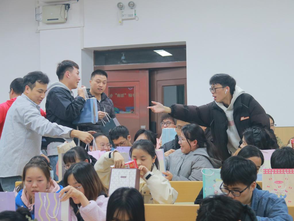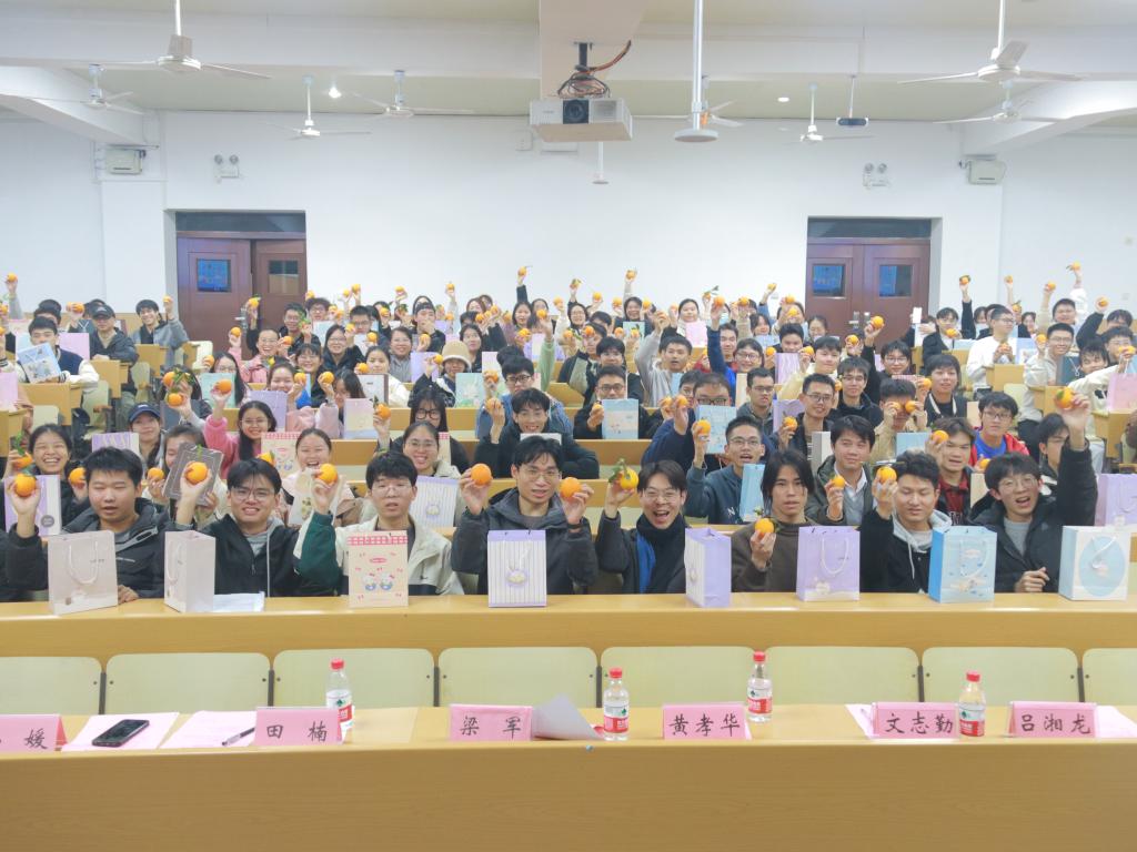 随后,学院领导班子为考研学子送上了精心准备的考研“暖心加油包”,其中包含代表心想事成的橙子,考研文具等。暖暖心意传递了学院老师们的期待与祝愿,期待同学们在备考的路上多一份安心与力量活动尾声,学院领导再次为考研学子们送上最真挚的祝福,强调学院始终是学子们最坚强的后盾,祝愿他们金榜题名。