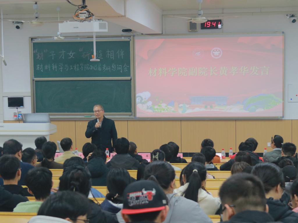 首先播放建院三十周年纪念视频,紧接着学院副院长黄孝华在大会上分享了行业现状和考研宏观情况,表示学院办学始终将全力支持学生考研工作,在实践中不断稳步进步。深情寄语2021级同学们,无论考研结果如何,能够走到这一步已经证明了大家的努力与实力。每一位考研学子都是材料学院的骄傲,希望大家以坚定的信念迎接挑战,用实际行动书写属于自己的荣耀篇章。