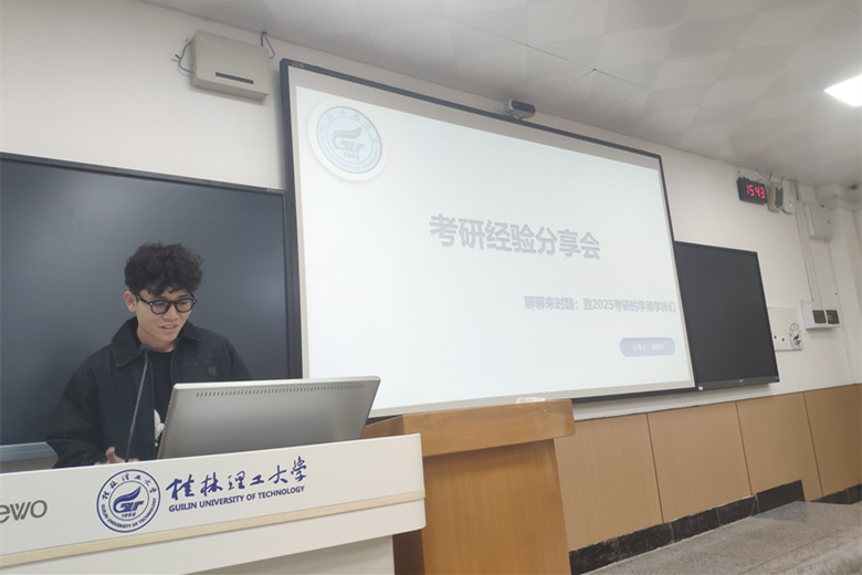 本次进行讲述的研究生学长潘家伟是上一届本校上研的学长。他围绕“考研冲刺阶段该做些什么”、“考研几天的作息和注意事项”等方面分享了自己的经历、体会、心得。由于出身本校,具有更为贴合目前同学们复习状态的经历,潘学长的讲解引起了大四考研同学们很大的共鸣和兴趣。同学们对英语听力、作文的复习,政治科目,专业课知识汇总,考研流程中特殊情况处理,心态保持以及面试技巧等方面积极发问,与学长进行了充分的沟通。