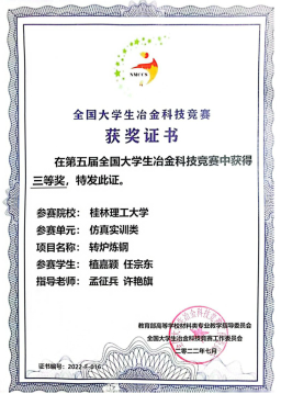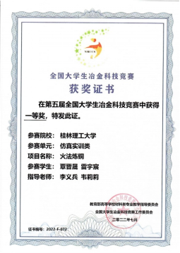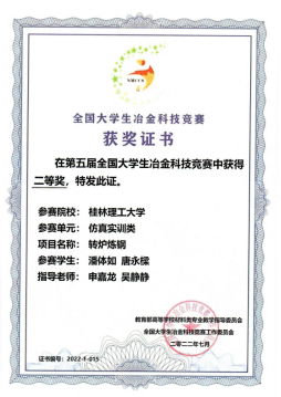 在太阳集团城网站2017冶金与金属材料工程教研室老师的精心指导下,代表桂林理工大学参赛共6项作品闯入决赛,经集中会评和终评答辩,最终科技创新竞赛单元获得二等奖2项,三等奖4项,仿真实训类的四支队伍全部获奖,其中转炉炼铜分别荣获大赛的一等奖、二等奖各一项,转炉炼钢荣获二等奖、三等奖各一项,为桂林理工大学争得了荣誉。体现了材料学院学子的综合素质和技能水平,也是对学院、学校办学特色和办学优势的最好诠释。