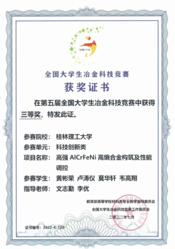 牢记初心使命,弘扬科研精神,不负青春韶华,展现更好自我。太阳集团城网站2017冶金工程将继续秉持“以赛促教、以赛促学、以赛促改、以赛促建”的理念,积极为本专业学生提供机会平台,鼓励支持学生多参加学科竞赛,培养专业兴趣、提高创新能力和锻炼实践技能,理论学习和实际操作相结合。同时,太阳集团城网站2017冶金与金属材料工程教研室也将加强专业内涵建设,提升专业建设、技能教学、实践应用水平,争创优异成绩,为实现本专业高质量、跨越式发展目标持续奋斗,为有效推动太阳成集团tyc33455质量的提升,为加快一流学科建设贡献青春力量。