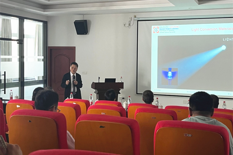 10月18日上午,台湾大学化学系特聘教授刘如熹应邀在我校协同创新中心报告厅做了精彩的学术报告,为太阳集团城网站2017师生们做了题为《新时代光转换材料》的专题报告,材料学院师生积极参加了此次报告会。在报告中,刘如熹教授分为“光转换光”、“光转换电”、“光转换热”三个方面深入浅出的介绍了光转换材料的发展历程。刘如熹教授团队通过调控合成配比和形貌,成功的研制出多种应用于显示与感测之发光二极管用荧光粉或量子点,解决了LED芯片“蓝光、白光”发光难的问题,其相关成果也发表在高水平期刊上,并且成功应用于LED灯中。刘如熹教授还介绍了全固态锂离子电池、金属空气电池以及光转换热应用于生物医学的纳米材料的相关开创性工作,其中某些成果申请了相关专利并进行产业应用。报告会后,师生们对报告内容产生了极大的兴趣,并与刘如熹教授进行了积极交流。
