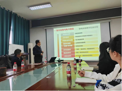 报告会上,白洋教授从铁电研究发展历程、电卡效应研究发展——电场与相变、室温制冷电卡陶瓷材料的开发、高维相图的建立与铁电特性的关系等方面详细地做了前沿科学报告,并指出了室温电卡效应的应用前景。会后,白洋教授认真回答了在场师生的问题,为材料学院从事电卡制冷、功能陶瓷相关研究的师生提供了指引。